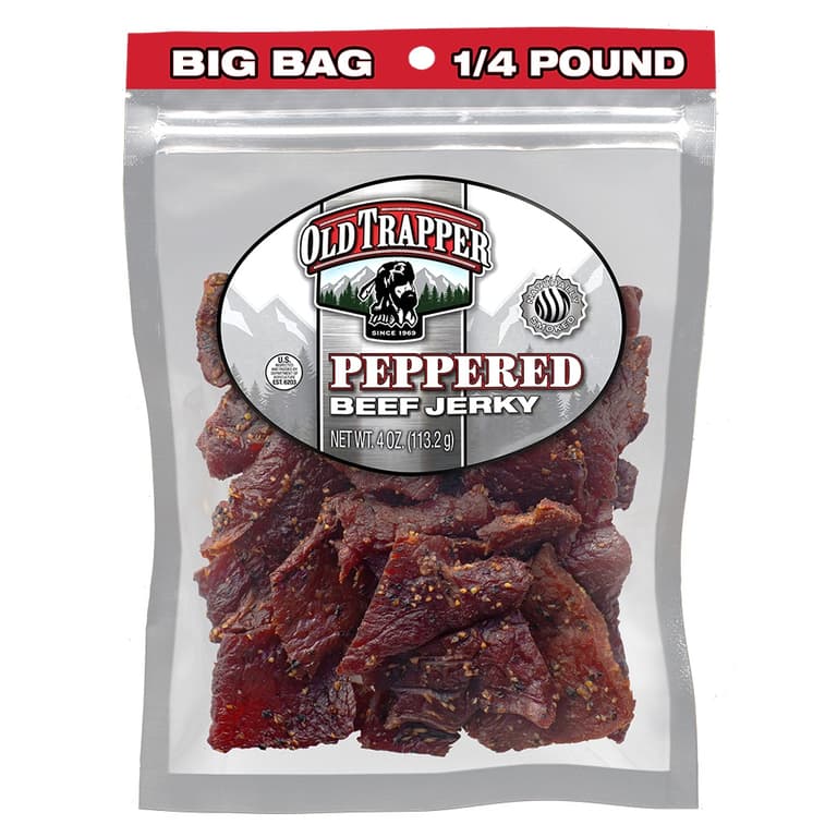 Old Trapper Peppered Beef Jerky is seasoned with a quality mix of spices and generous amounts of fresh black pepper, then smoked with real wood in smokehouses until each piece is tender and juicy.Specifications