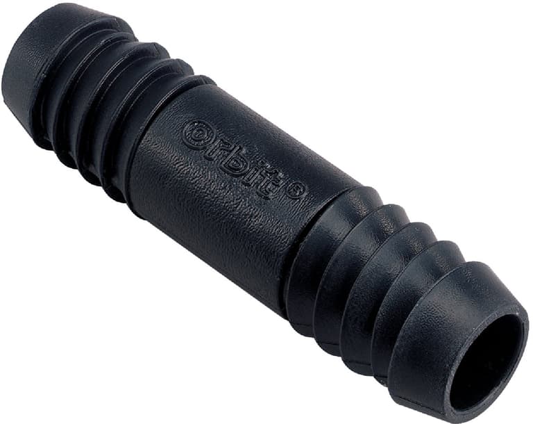 1/2 barb coupling; For use with 1/2 riser flex pipe; Ideal for connecting sprinkler heads to fittings from existing or new installations without the use of pipe clamps; Molded high impact plastic construction