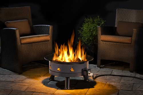 58000 BTUs provide a clean and smokeless flame which rivals a natural campfire; always check with current restrictions in place in your area; CSA approved fire pit with manual ignition is safe to use during most campfire bans; Includes burner hose grip knob tank stabilizer ring and other such hardware; Quick and easy set up with no tools required.