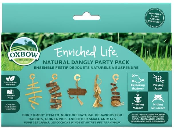 CONTAINS FIVE IRRESISTIBLE NATURAL DANGLY CHEWS; ENCOURAGES PHYSICAL AND MENTAL STIMULATION; FEATURES A WIDE VARIETY OF SAFE NATURAL MATERIALS; GREAT FOR MULTIPLE PET HOUSEHOLDS; SUPPORTS YOUR PETS INSTINCTUAL CHEWING PLAYING AND EXPLORING BEHAVIORS