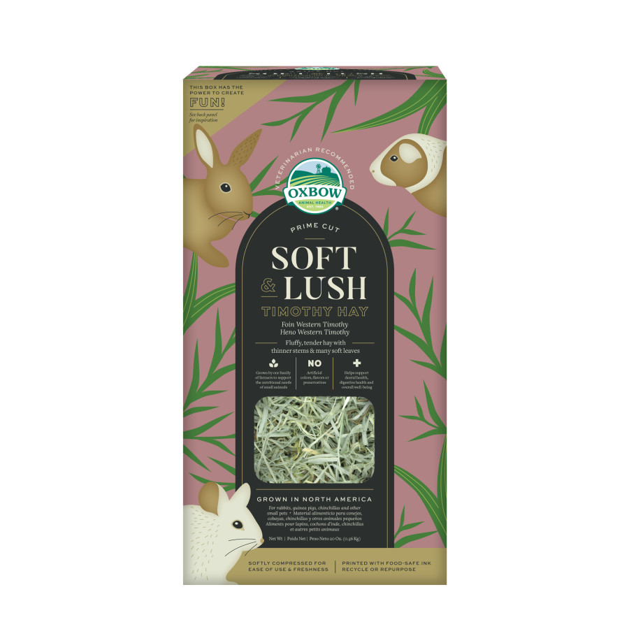 Our hand-sorted Prime Cut Soft & Lush Hay offers the dental and digestive health benefits your pet needs along with the exact taste and texture they want. With Oxbow Prime Cut, you aren’t just feeding their bellies, you’re feeding their need to explore, forage and learn - providing an ultra-premium experience. It’s one of the many ways we support daily enrichment and your pet’s total wellbeing.Specifications