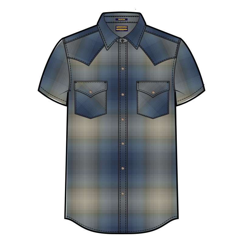 60% COTTON/40% POLYESTER; BIAS-CUT POCKETS; CLASSIC WESTERN DETAILS; PEAKED YOKES; PEARLIZED SNAPS; SHIRTTAIL HEM
