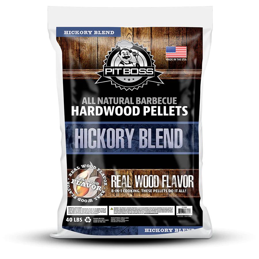 Pit Boss Hickory Hardwood Pellets produce a strong and smoky taste that is ideal for beef, pork, poultry, and vegetables. No artificial flavors, spray scents, glues or chemicals: Pit Boss Hardwood Pellets are 100% naturalSpecifications