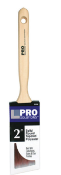 Pro Solutions Solid Round Tapered Polyester is our contractor-grade paint brush containing a blend of high-quality durable filament that delivers sharp paint lines and smooth professional-looking results. Ideal for use with all sheens of interior and exterior water-based oil-based and alkyd paints primers stains and clear finishes. Available in either flat or angular-sash with hardwood handle styles including beavertail and standard.Specifications