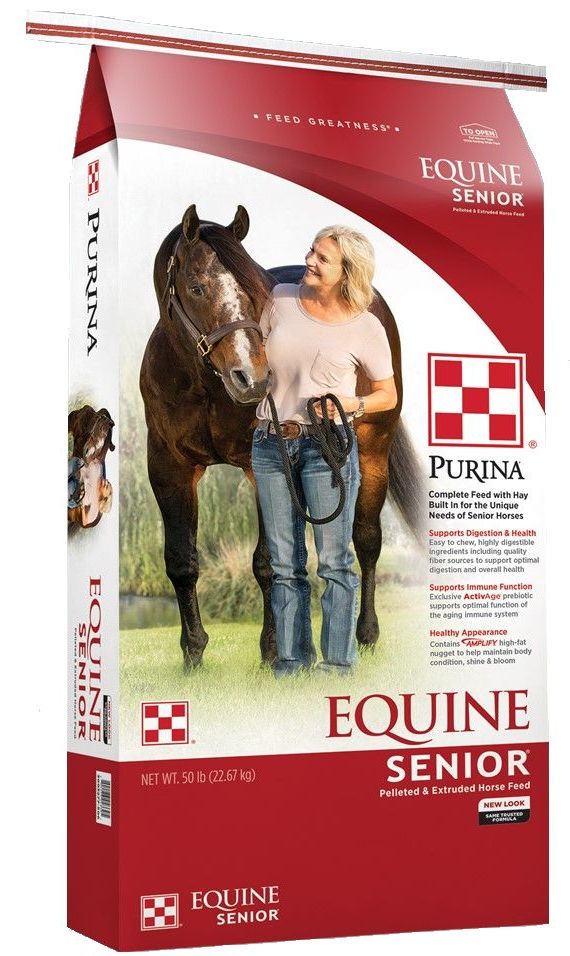 Purina’s Ph.D. Equine Nutritionists and Veterinarians continually research new ways to address the specific needs of aging horses, helping your senior horse live a long, healthy life. Purina Equine Senior horse feed has been scientifically studied at the Purina Animal Nutrition Center for over 20 years. With this formulation, our nutritionists have combined all the benefits of the trusted original Equine Senior horse feed together with discoveries from the most cutting-edge equine science.Specifications