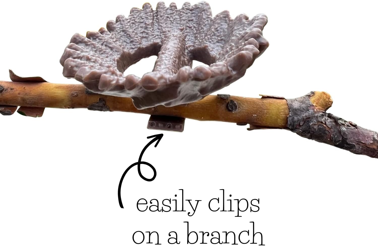 Clips to a branch or shrub; Nesting Pods to build a Hummingbird Home; Texured surface for nest adhesion
