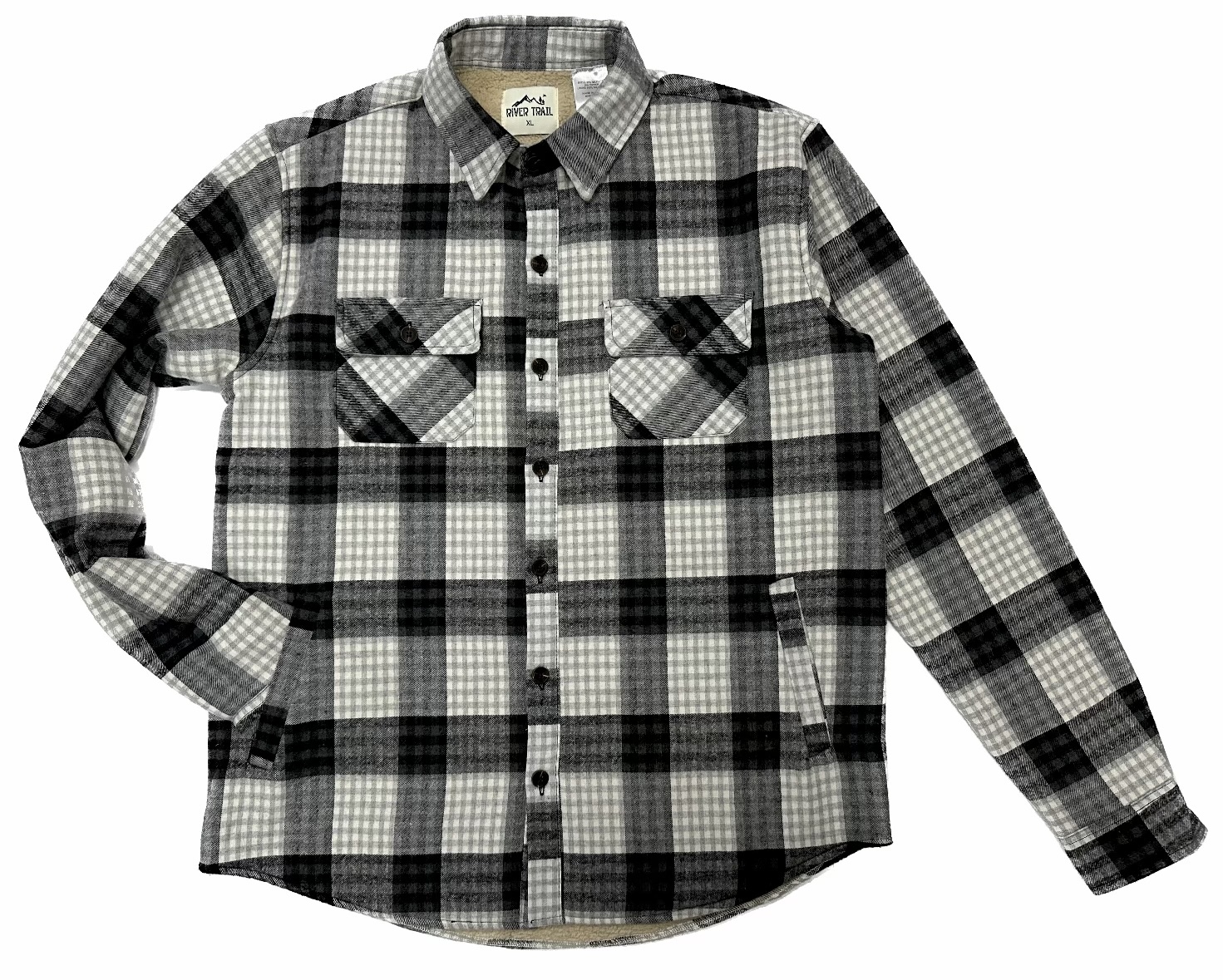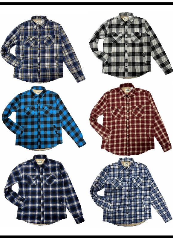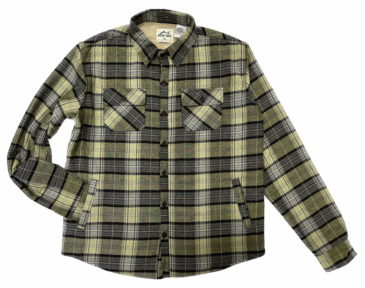 ASSORTED SIZES & COLORS - PLEASE SEE STORE FOR SPECIFIC SIZES & COLORS. Mens Durable River Trail Long Sleeve heavy Sherpa-LINED Button Down flannel shirt jacket. Very durable and features a chest pocket.Specifications