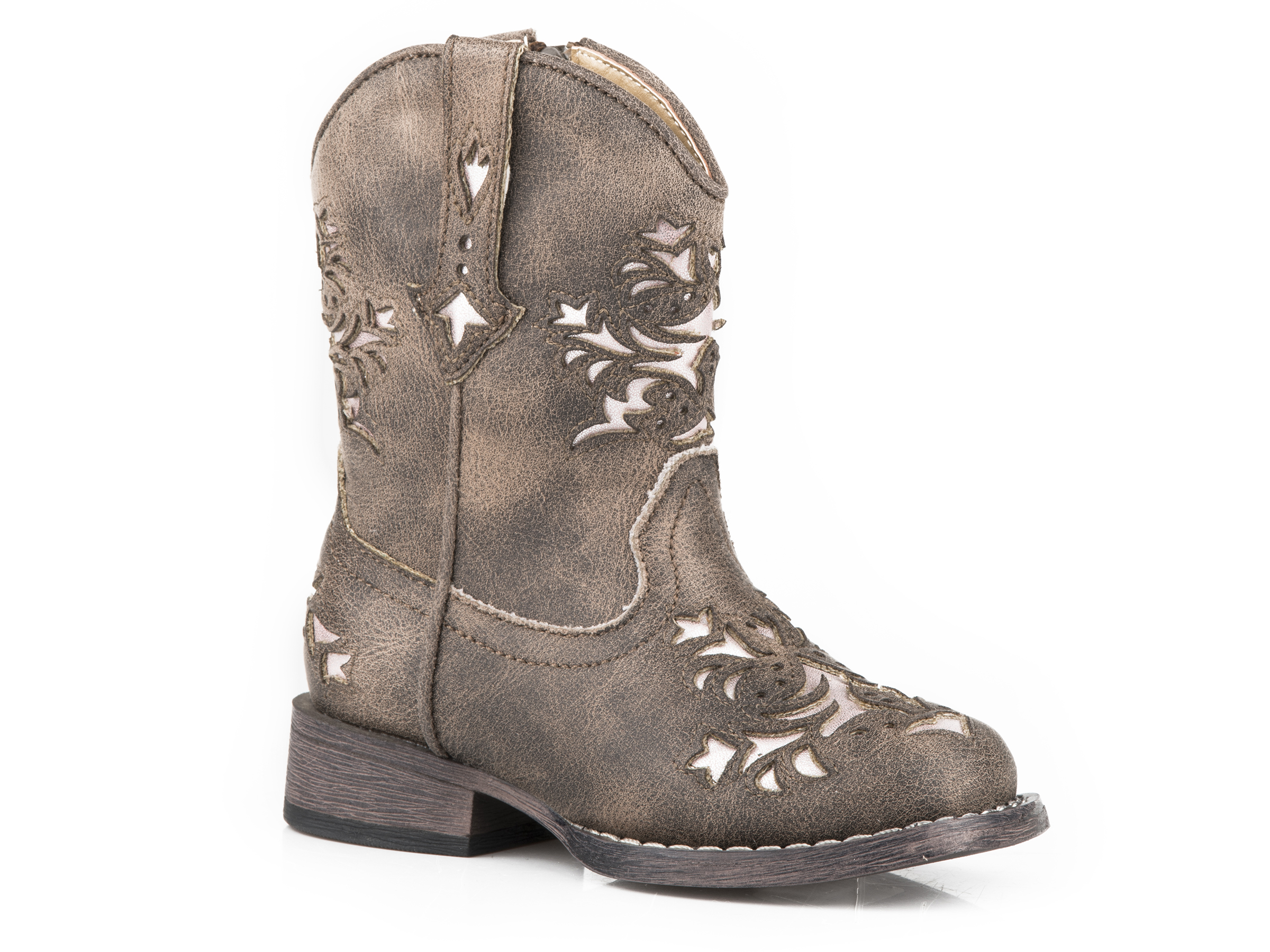 Roper Girls Lola features brown vamp and shaft with silver underlay and square toe.Specifications
