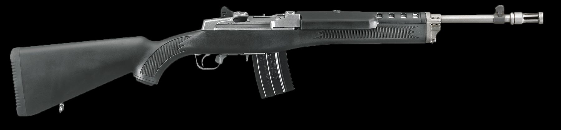 The Mini-14 Tactical rifle offers inherent accuracy and quick repeat shot capability. Its Garand-style action with breechbolt locking system, is a fixed-piston gas system and self-cleaning which gives unparalleled reliability under harsh operating conditions. The steel receiver is drilled and tapped, has a Picatinny rail, and integral scope mounts that provides a stable mounting surface. The Mini-14 Tactical also has a cold hammer-forged, threaded barrel and ghost ring adjustable rear and blade front sights. Included are two magazines and scope rings. This model has a 16.12" stainless steel threaded barrel with a flash suppressor and a black synthetic stock.Specifications