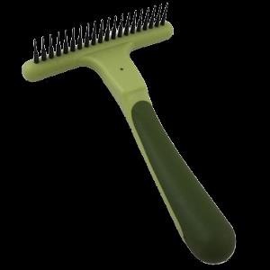 The Safari by Coastal Dog Single Undercoat Rake has precision tapered pins that penetrate deeply into the coat to remove mats and tangles. It is designed for medium and long-haired dog coats. The ro
