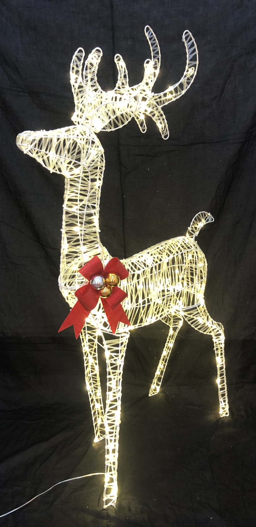 Santas Forest 58618 52"H 3D lighted mico standing buck, 160 micro copper rope leds. Red bow, Packing : white boxw/ color label & upcSpecifications