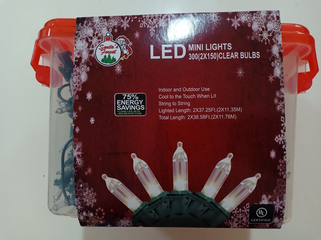 LED MINI 300 CT (2x150) 12" LEAD x4"CUT x4"END EC CLEAR; PLASTIC TOTE BOX