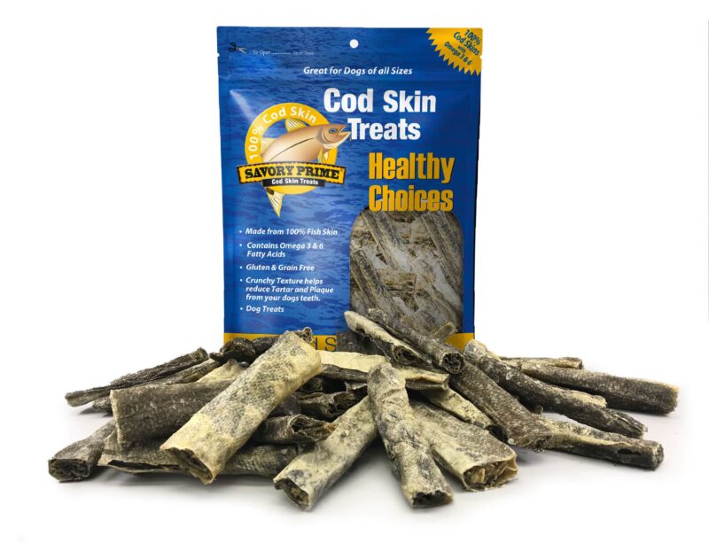 Our Cod Skin Treats are made from wild caught Pacific and Atlantic Cod. Our Cod Skin Treats have natural omegas, essential oils and nutrients; our treats promote healthy skin, coat, heart, and overall health of your dog. No preservatives or artificial ingredients.Specifications