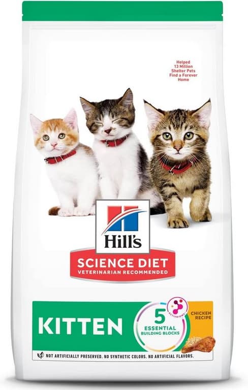 Hill's Science Diet Kitten dry food is carefully formulated for the developmental needs of kittens, so they get the best start in life & grow to their full potential. Great tasting natural nutrition for a long, happy life. With soft purrs and even softer nuzzles, you and your cat have a thing all your own. Because every moment you spend together is special, we strive to give you more of them. With natural ingredients and the right nutrients, Hill's Science Diet is precisely prepared to offer your cat the nutrition she needs for lifelong health and happiness.Specifications