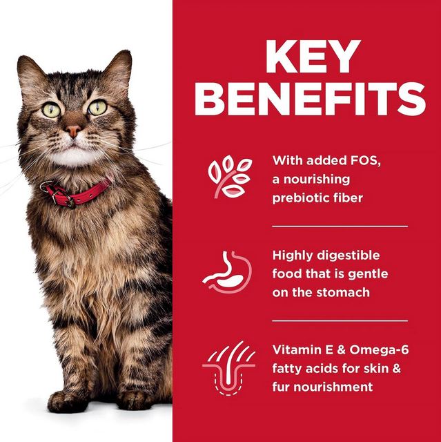 Help purr-vide your feline friend with optimal digestive health that also helps nourish her skin and promotes lustrous fur. Your kitty’s stomach health is a very important part of her everyday life, that’s why Hill’s Science Diet Adult Sensitive Stomach & Skin Chicken & Rice Recipe is crafted with natural ingredients like prebiotic fiber, to help fuel your adult cat’s beneficial gut bacteria and support a balanced microbiome. And with easily digestible ingredients, this dry cat food recipe allows her stomach to process nutrients quicklythis can lead to easier stool pickup as well. And with vitamin E and omega-6 fatty acids to nourish skin and coat health, there’s more to love with Hill’s Science Diet.Specifications