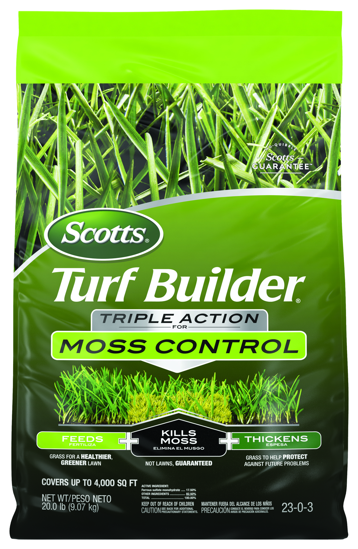 3&1 moss killer product kills moss with out harming your lawn. Feed grass for a healthier, greener lawn and thickens grass to help protect against future problems. Apply to a moist, mowed lawn during winter or spring when moss is actively growing.Specifications