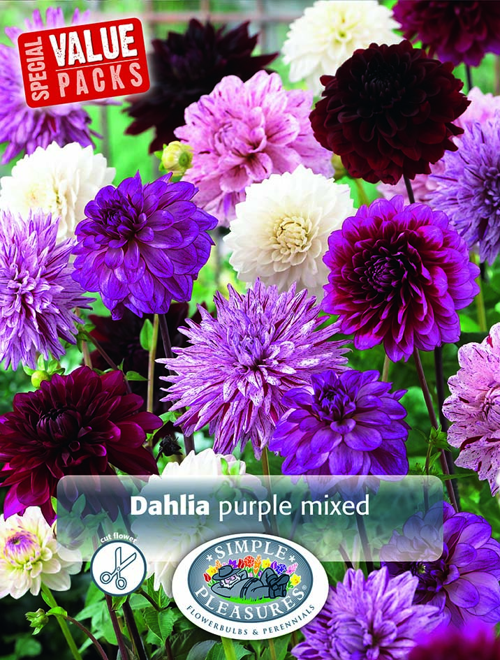 Whether your intent is a colorful garden bed or to fill your home with beautiful bouquets, this collection does it all. Stunning Dahlias have taken the gardening world by storm, and our collections highlight some of the best and brightest combinations to make garden and bouquet design easy. Dahlias are available in a broad range of flower forms, with colors ranging from soft pastels to vivid hues to deep rich shades. Dahlias are perennial in zones 8-10, but in cooler zones, tubers can be dug after frost comes, stored over winter, then re-planted the following spring.Specifications