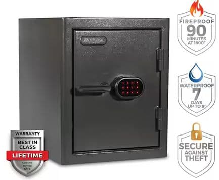 The Sanctuary series of Home / Office safes provides solutions for in-home secure storage of valuables against theft, fire and flood, all while fitting seamlessly with any household decor. Features 90 minutes fire protection @ 1800 degrees along with water protection up to handle on safe. Full illuminated programmable electronic lock with back up key along allows for easy entry when needed. Fully carpeted adjustable inteior shelving and pre-installed interior lighting makes all items visible inside. CA Department of Justice approved firearm storage device along with Sports Afield Best in Class Lifetime warranty!Specifications