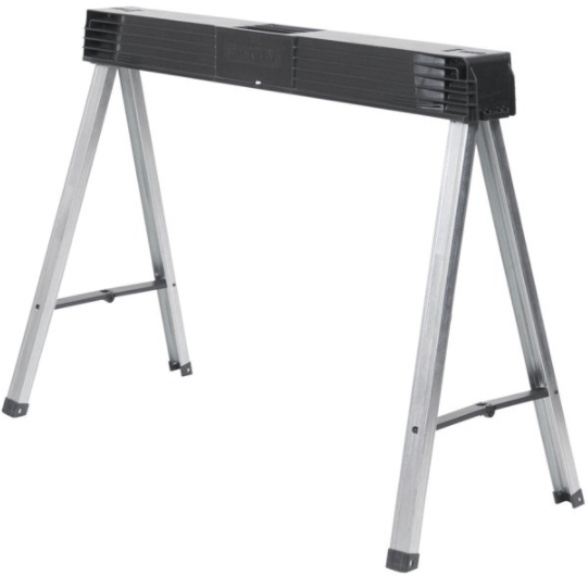 The Stanley fold up sawhorse features a portable, integrated handle or shoulder strap to allow carrying wherever needed.Galvanized metal and polypropylene construction for lightweight durabilityIntegrated handle or shoulder strap for easy transport side latches hold two single unit together for storage/portability. Folding metal legs with locking mechanism for easy setup and safe transportation. Rubber leg tips to help prevent movement. Designed with working height in mind for comfort.Specifications