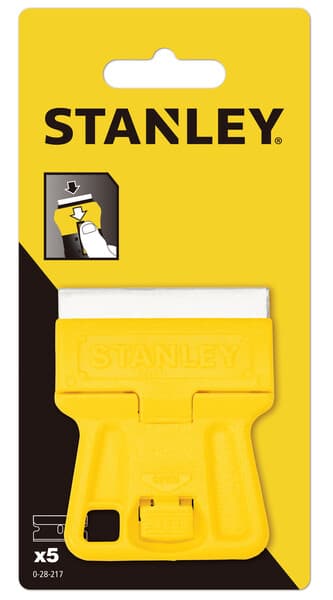 This lightweight, high-visibility plastic mini razor blade scraper works well in hard to reach places. It uses a standard, single-edge razor blade which reverses for safe storage.Specifications