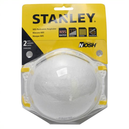 The Stanley SYN95 is a NIOSH approved N95 particulate respirator. It is designed with a soft liner and comfortable straps for an all-day wear. The adjustable nose clip allows for a snug customizable fit. Can be used with applications such as drywall, sanding and woodwork.Specifications