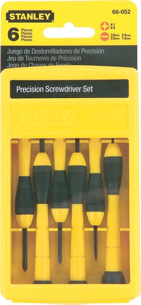 Be ready for any job that comes up with this dependable Precision Screwdriver Set (6 pc). The set includes 6 of the most widely used slotted and Phillips screwdrivers and is perfect for a variety fastening applications at home or on the jobsite. Built for comfort, reach, and precision, these screwdrivers feature strong, plastic swivel-head handles for an optimized user experience.Specifications