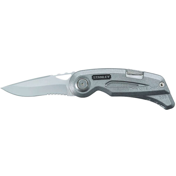 STANLEY quickslide pocket sports utility knife with utility blade and serrated sports blade for multiple applications