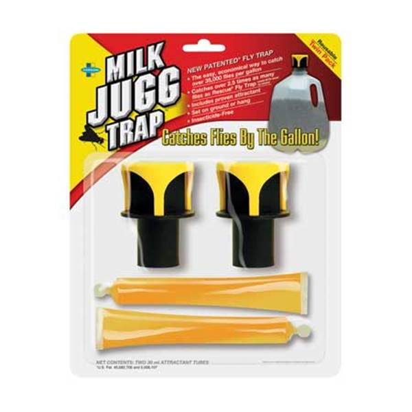 2 PACK; COMES WITH TWO PLASTIC TRAP HEADS AND FLY ATTRACTANT; CONVENIENT FLY CONTROL FOR THE FARM; COST-EFFECTIVE FLY CONTROL FOR THE MEDIUM LEVEL AROUND BARNS AND AGRICULTURAL FACILITIES