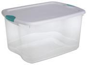 23 3/4 INCH BY 16 INCH BY 13 1/2 INCH SIZE; 64 QUART CAPACITY; CLEAR BASE FOR QUICK VIEWING OF CONTENTS AND RECESSED LID FOR STACKING; EFFICIENT SPACE-SAVING SHAPE AND MODERN STYLING; IDEAL FOR STORAGE NEEDS THROUGHOUT THE HOME; INNOVATIVE LATCH ALLOWS LID TO LIFT AS IF IT WERE HINGED FOR EASY ACCESS WITH ONE HAND