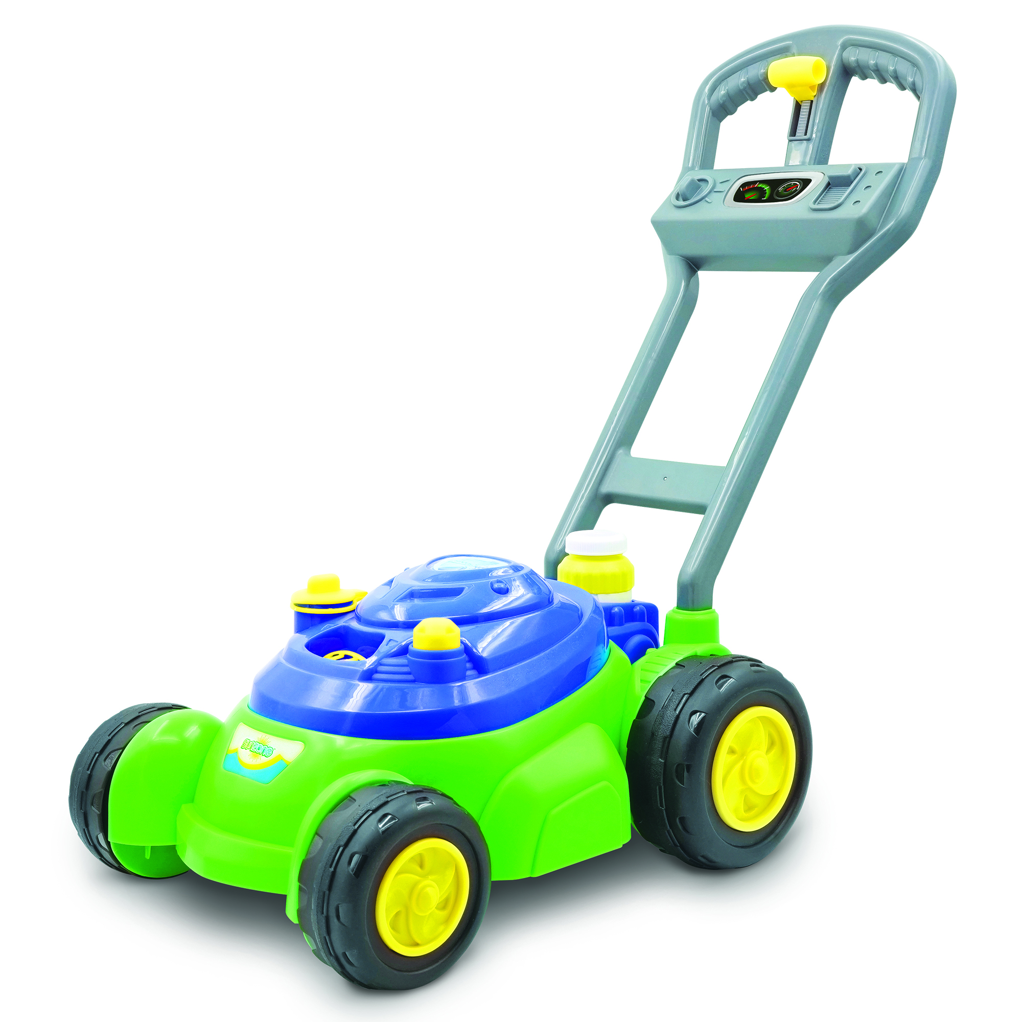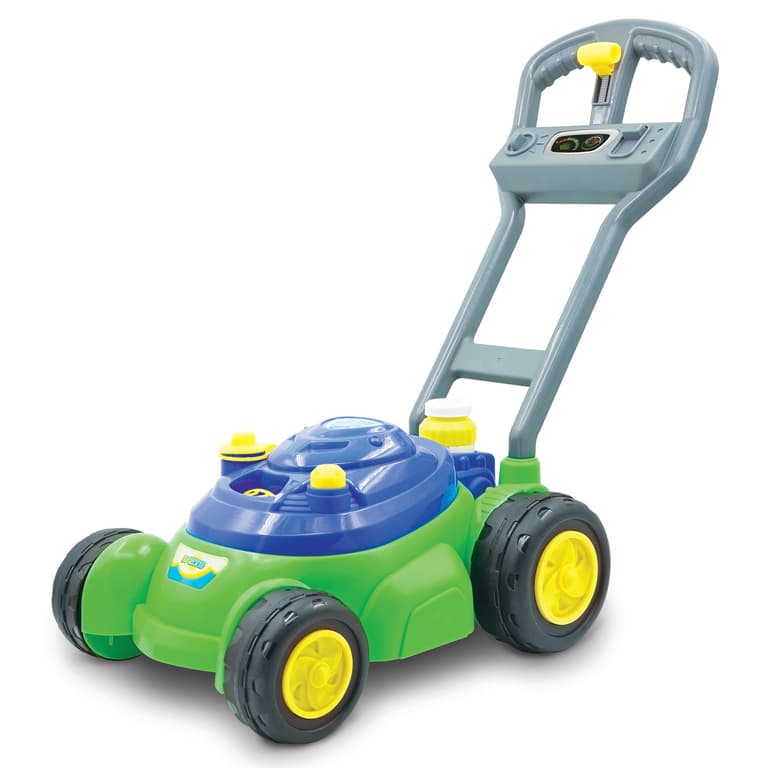 This adorable toy lawn mower is a fun way to get kids up and moving outside. As the mower is pushed, it plays realistic mowing noises that kids will love.With its realistic design and mechanical sounds, the mower helps to promote pretend play and encourages kids to use their imagination for awesome outdoor play.Parents will love the newly designed bubble wheel with mess-free construction.Specifications