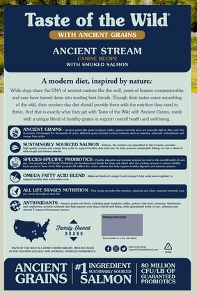 FAMILY OWNED; HELPS TO SUPPORT BONES, JOINTS & LEAN, STRONG MUSCLES; MADE IN THE USA; NUTRIENT-RICH & PROVIDES THE ENERGY TO THRIVE; OMEGA FATTY ACIDS FOR HEALTHY SKIN & COAT; REAL SMOKED SALMON IS THE #1 INGREDIENT; VITAMINS & MINERALS FROM SUPERFOODS & ANCIENT GRAINS