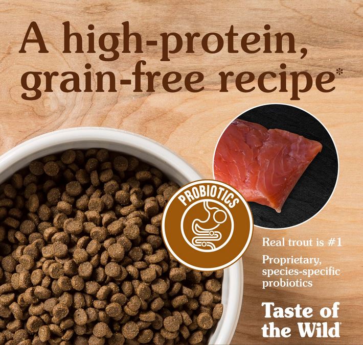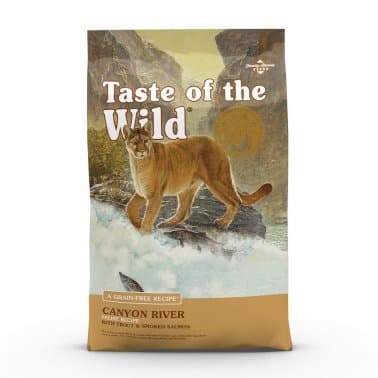Watch your cat play and you will soon realize that your purring friend still has many of the same behaviors of a wild cat. Years of domestication and excellent care have turned a short-lived potential foe to a long-lived companion. Feed your cat like the true carnivore they are with Taste of the Wild's Canyon River Feline Recipe with Trout & Smoke-Flavored Salmon. A grain-free recipe with sweet potatoes and potatoes provides highly digestible energy for your active cat. Made with trout and smoke-flavored salmon, this recipe offers great taste and quality fish protein. For today's healthy cat, this recipe is supplemented with vegetables and fruits, providing antioxidants to support a healthy immune system and overall good health. Your cat craves tastes from their wild past. Go ahead and give them one.Specifications