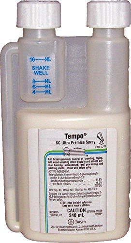 Tempo SC Ultra Premise Spray provides broad-spectrum control of more than 60 pests in and around animal facilities, outbuildings and sheds.Specifications