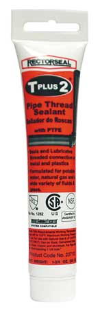 Pipe Thread Sealant, 1.75 oz, Container Type Tube, Chemical Type PTFE, Color White, Gas Pressure Range 2,000 PSI, Liquid Pressure Range 10,000 PSI, Full Cure Non Setting Immediate Test, Begins to Harden Not Specified, Application Temp. Range 20 Degrees to 140 Degrees F, Performance Temp. Range -40 Degrees to 300 Degrees F, Flash Point 300 Degrees F, Specific Gravity 1.32, Viscosity 170,000cp.Specifications
