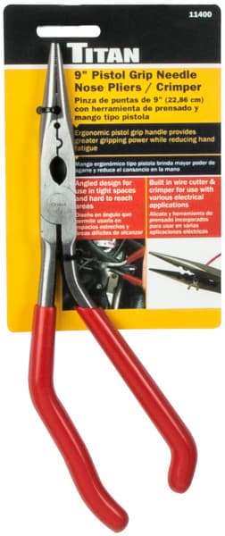 Ergonomic pistol grip handle provides greater gripping power while reducing hand fatigueAngled design for use in tight spaces and hard-to-reach areasBuilt in wire cutter and crimper for use with various electrical applicationsSpecifications