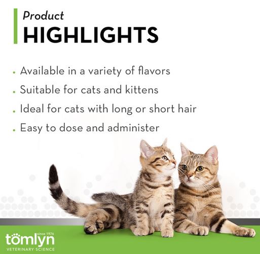 Help stop late-night hairball hacking in your home with Tomlyn Laxatone Hairball Remedy Catnip-Flavored Gel for Cats. Cats naturally shed their coats, and they will inevitably ingest fur as they groom. Though grooming and bathing your cat helps eliminate loose hair, and some fur will still reach their stomach. Your cat’s system cannot digest hair, leading to the formation of troublesome hairballs. These hairballs can lead to blockages within your cat’s digestive system. Tomlyn Laxatone Hairball Remedy Catnip-Flavored Gel: Gently lubricates ingested hair so that it passes in the stool, Adds important omega-3, omega-6, and omega-9 fatty acids, which help maintain a healthy skin and coatSpecifications