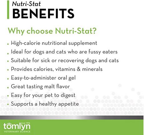 Appetite stimulant, calorie booster, weight gainer for fussy eaters; concentrated source of vitamins and minerals, ideal for growing pets; Contains omega-3 and omega-6 essential fatty acids to support healthy heart, skin and Joints; ideal for pets refusing food; Nutri-Stat high-calorie gel; Nutritional oral gel for pets who need extra calories and vitamins; veterinarian recommended