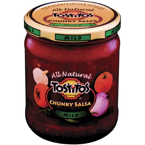 15.5 oz. jar of TOSTITOS Mild Chunky Salsa; Great size jar for placing out at your family get-together; Pair with any TOSTITOS tortilla chips for snacking deliciousness; Pepsico Healthy Snack item - Smart Spot