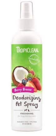 TropiClean Deodorizing Pet Spray conditions and soothes as it breaks down odors at their source, effectively deodorizing your dog, cat and home. The sweet and fruity berry scent leaves your pet smelling fresh and ready for cuddles!Specifications