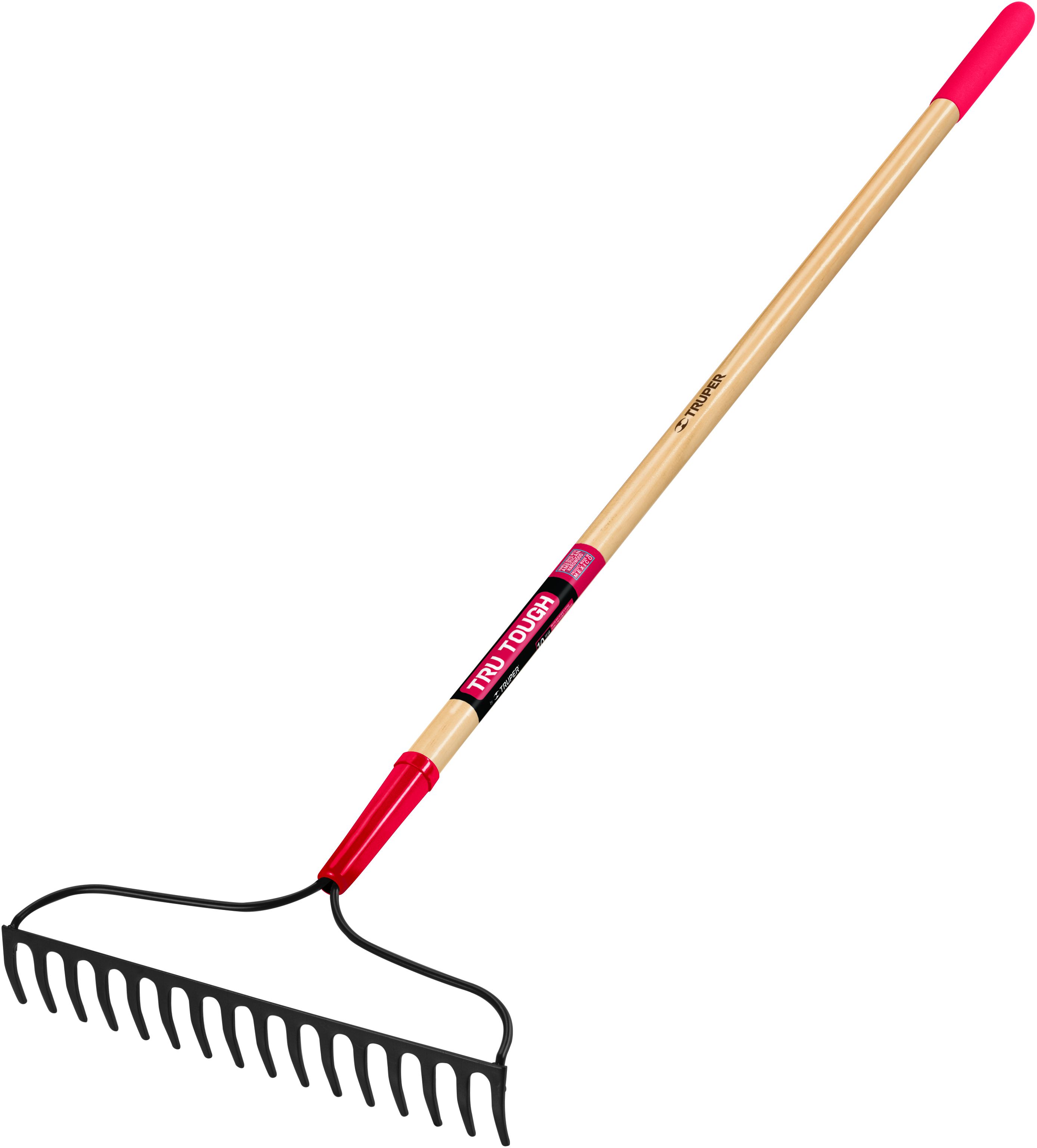 R-16AM-E, 54-inch North American ash, lacquered handle for strength and durabilityWelded 16 teeth bow rakeClear-coated gray-steel finished headsSpray clean with garden hose, coat with silicone sprayTruper 31356, tru-tough: trupers best selling signature tool lineSpecifications