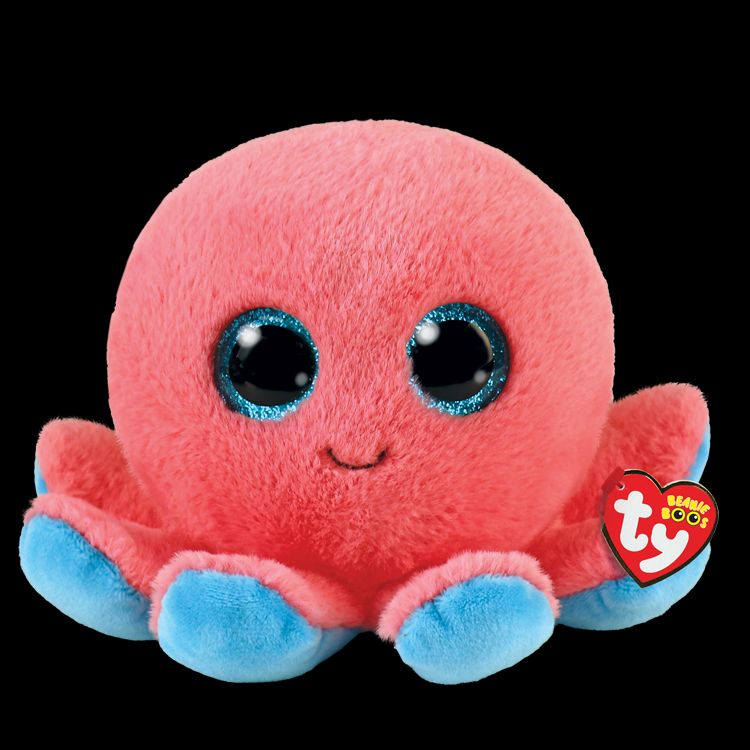 Coral and blue octopus with eight tentacles; Great for any ocean or water lover; Includes official Ty Heart with birthday and poem; Made with super soft Ty Silk fabric; Ready to bring to the beach; Sparkly blue glitter eyes