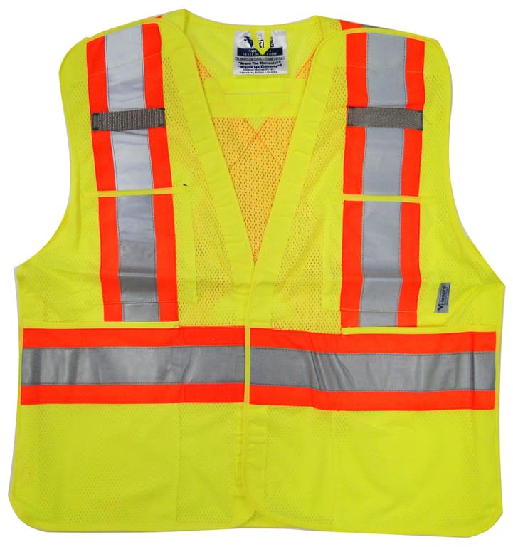 Soft breathable mesh polyester vest material Fully compliant with ANSI/ISEA 107-2015 Type R, Class 2, not FR 2" Vi-brance reflective safety material in 4" contrasting tape meets WCB/Worksafe/DOT configurationSpecifications