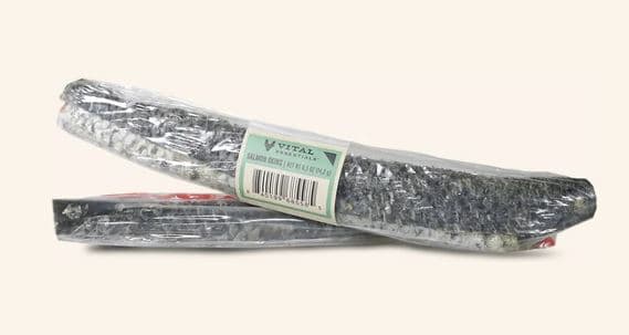 We use a slow freeze drying process on butcher cut salmon to seal in the naturally occurring Omega 3 Fatty Acids into an easy-to-serve salmon skin treat, great at any time of day. Treat your dog to butcher cut raw protein between meals for a snack that builds strong muscles for more play, naturally supports digestive and oral health, and provides essential nutrients to support your dogs vitality.Specifications