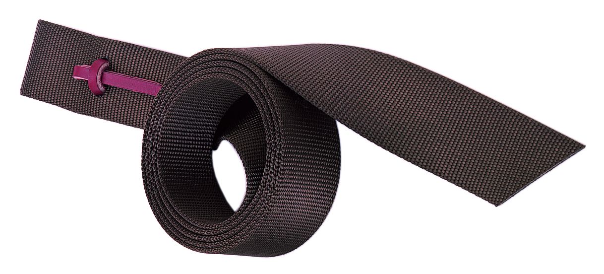 Features holes for buckling and a burgundy alum tanned leather tie; Heavy-duty nylon latigo; Measures 1-3/4 IN x 70 IN