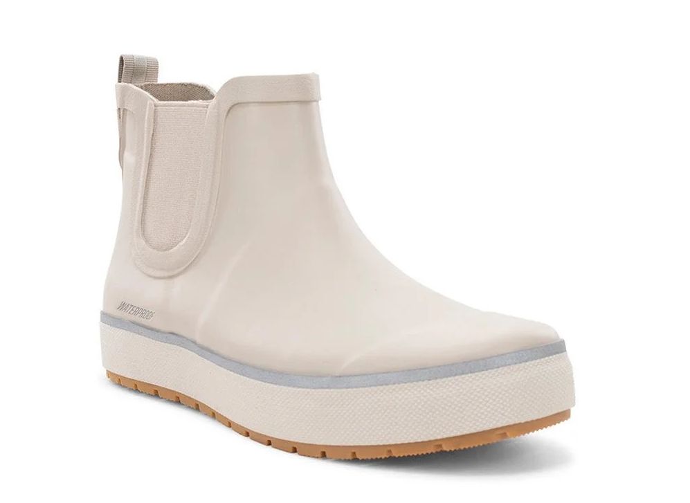 Trendy taupe chelsea rain booties. Great for a variety of calf widths (wide or athletic) or for those who want minimal coverage. These modern booties are easy to wear all day.Specifications