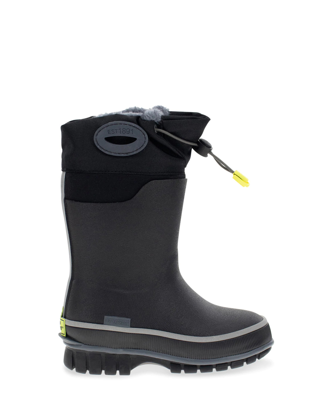 Black waterproof and warm winter snow boots. Easy pull-on handles that are keep the wind out. An adjustable toggle closure for a snug fit. These boots are cold-rated to handle brisk temperatures as low as -30 degrees.Specifications