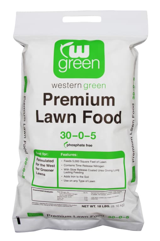Western Green Premium Lawn Food is formulated for the northwest to produce greener lawns. It contains time release nitrogen and adds iron to the soil. It makes roots stronger and thicker and can be used on any type of lawn. Premium Lawn Food also features a slow release coated area giving long lasting feeding.Specifications