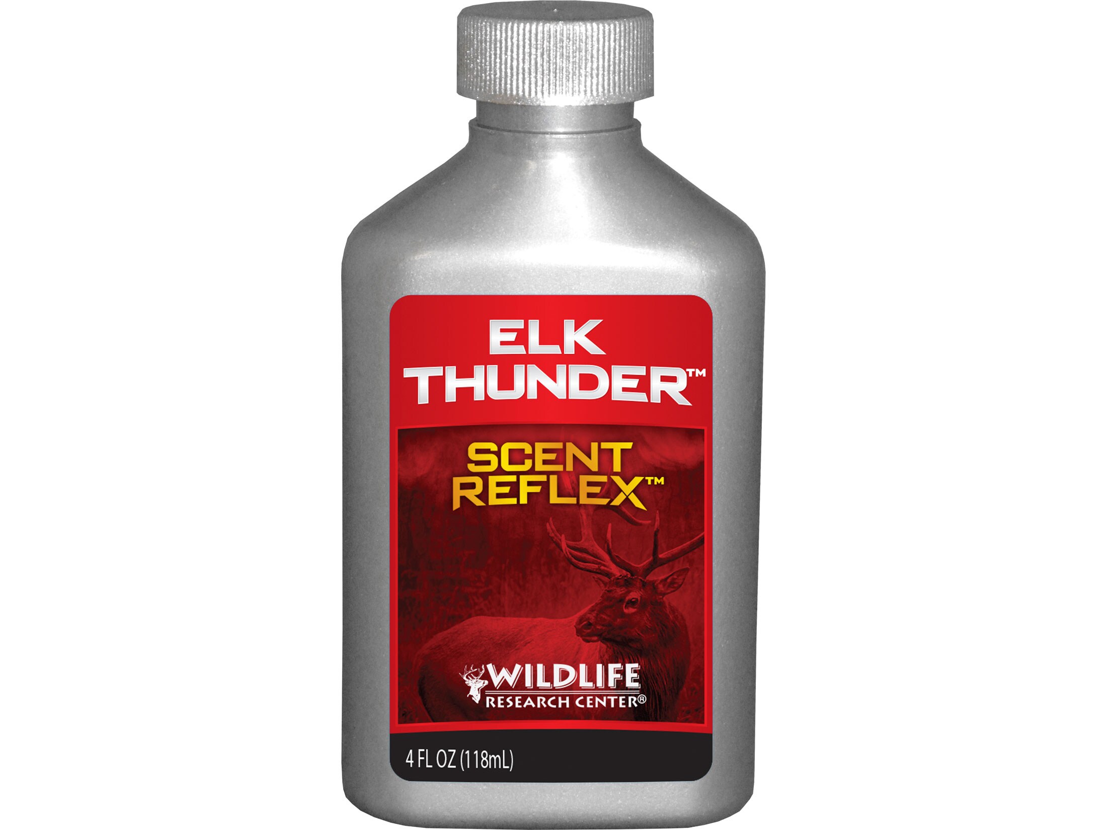 4 FL OZ Bottle; A real odds booster to improve your luck; Formulated to Stimulate and Attract Rutting Bull Elk; Most Effective during Pre-Rut and Rut; Strong & Premium Synthetic Elk Scent; Super Charged; Wildlife Research Center Elk Thunder; with break-through Scent Reflex Technology for stronger more consistent responses