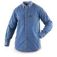 100% Cotton; Button closure; Durable Materials. Made with 100% cotton this versatile shirt is comfortable for those long workdays and remains durable after each wash; Imported; Machine wash; Relaxed Fit. This mens button down work shirt is made with a classic relaxed fit. This long sleeve buttoned shirt is your go-to great for wearing alone or layering with your favorite Wrangler tee; Riggs Workwear. Durable enough to stand up to the daily wear and tear of tough jobs without sacrificing a great look. Pair with Riggs pants jeans and jackets for a complete look; Room2Move Fit. This work shirt features side gussets allowing comfortable movement through the torso. Arms buttons allow you the option to roll up your sleeves when the workday gets tough; Two Pockets. Two chest pockets allow you to keep your phone wallet or keys close at hand for easy access on the job