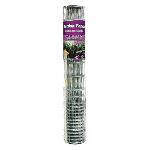 Easy way to aid in protecting gardens from rabbits and small animals; Galvanized before welding; Gauge: 14; Measures: 40in x 50ft; Mesh Size: 1in x 4in; Top is 4in x 4in mesh